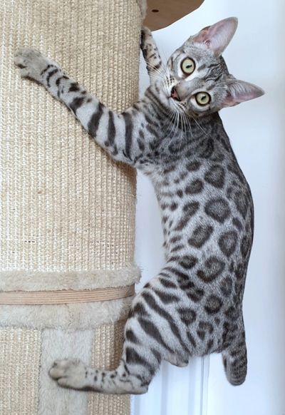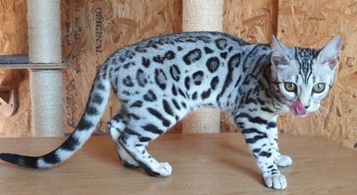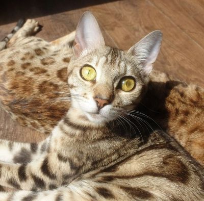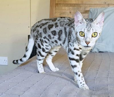 Malika is a 3rd generation home bred queen and 7 generations removed from the wild Asian leopard cat.